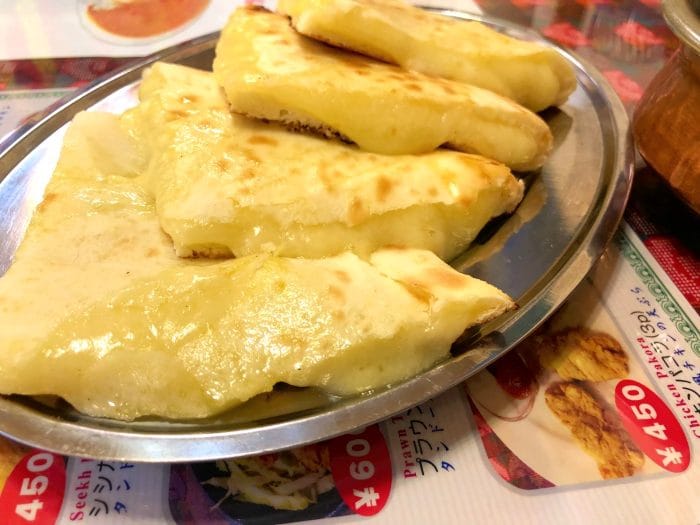 一口食べるとナンの甘さとチーズのコクが口一杯に広がります!ヨダレが…(笑)
