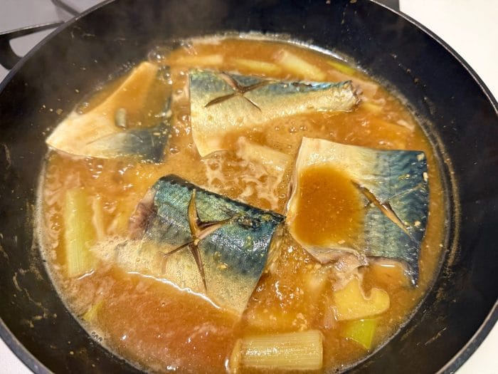 煮込み過ぎるとサバの身がパサパサするので注意。