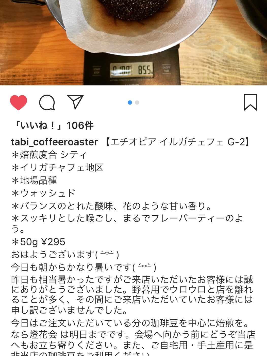 この豆の特徴はTABI coffeeのInstagramに詳しく載っています!